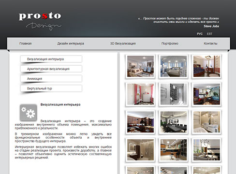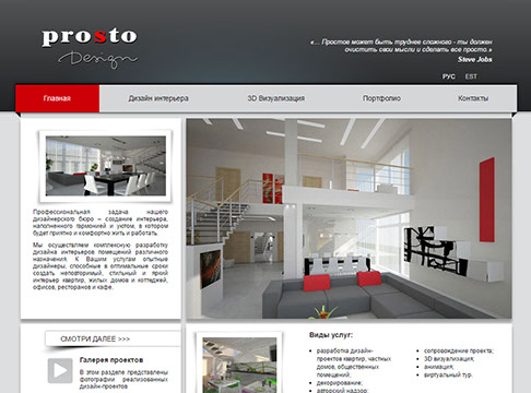Сайт-портфолио фирмы. В задачи сайта входило демонстрация возможностей и реализованных проектов фирмы для привлечения новых заказчиков.