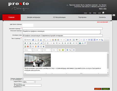- Создание системы управления, позволяющей без дополнительного обучения управлять содержимым сайта.