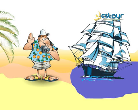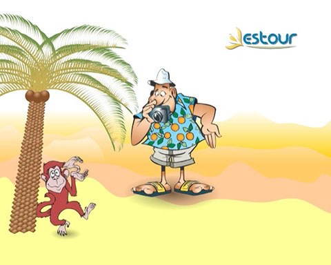 Kahemõõtmeline vektorilaadne multiplikatsioon turismifirma tuntava firma kujutisega, mida on eelnevalt kasutatud Estouri toodetes.